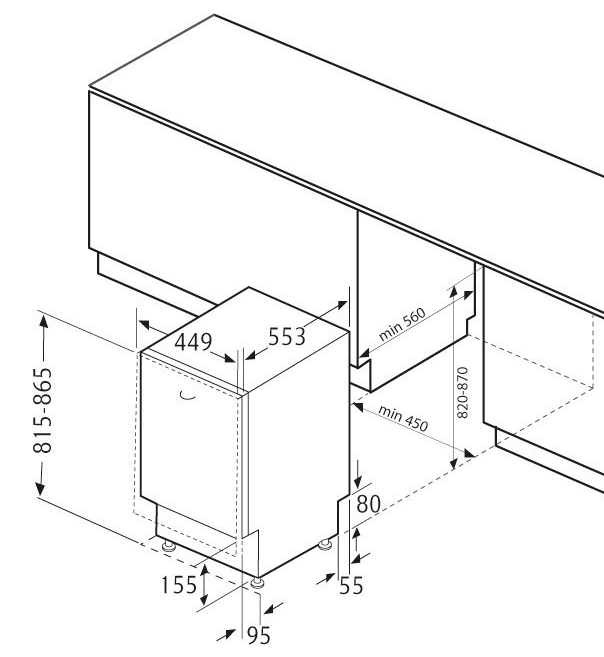 машина посудомоечная встраиваемая, 45 см, 10 комплектов