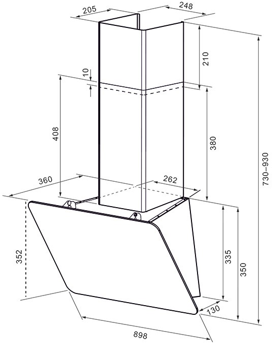 вытяжка наклонная, 90 см, 600 м3/ч, белое стекло