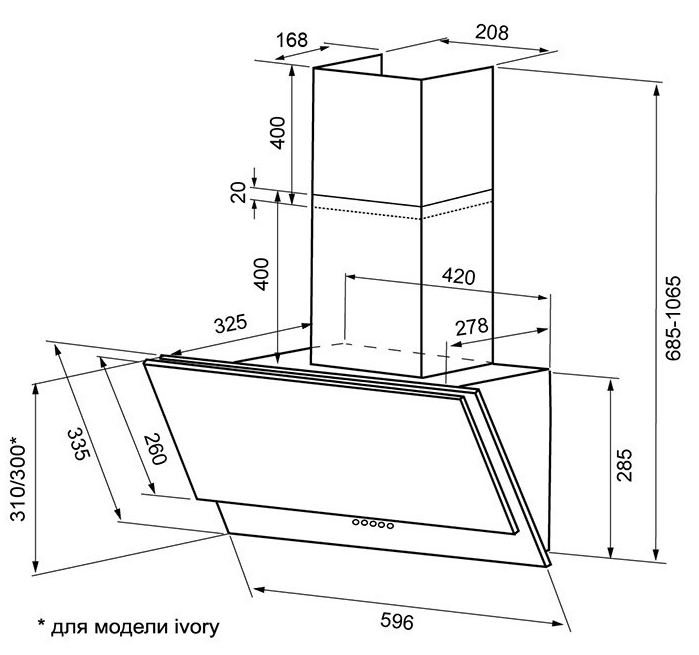 вытяжка наклонная, 60 см, 500 м3/ч, черный