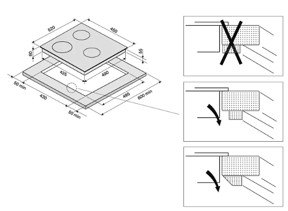 Расположение панели управления варочной поверхностью относительно конфорок. Если панель расположена сбоку, она будет справа.