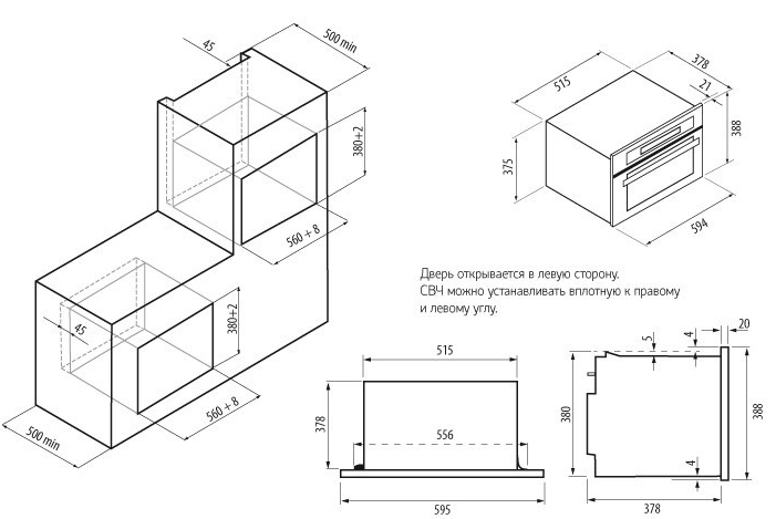 Дверца может открываться по-разному в зависимости от конструкции. Ориентируйтесь на личные предпочтения и будущее расположение прибора.