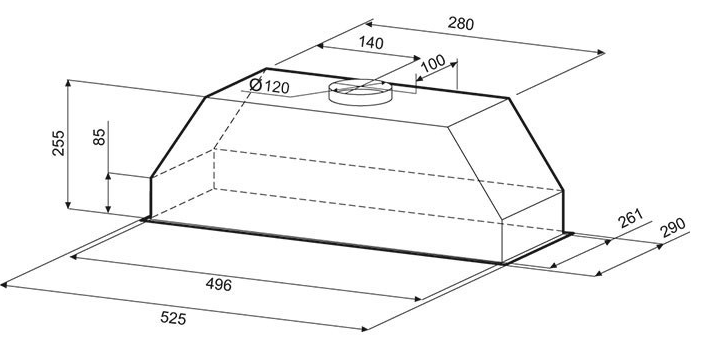 вытяжка встраиваемая в подвесной шкаф, 53 см, 650 куб.м./ч, слоновая кость