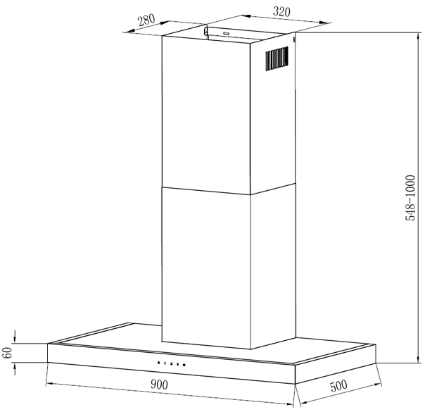 Krona RUT 900 inox 3P-S Вытяжка пристенная Т-образная