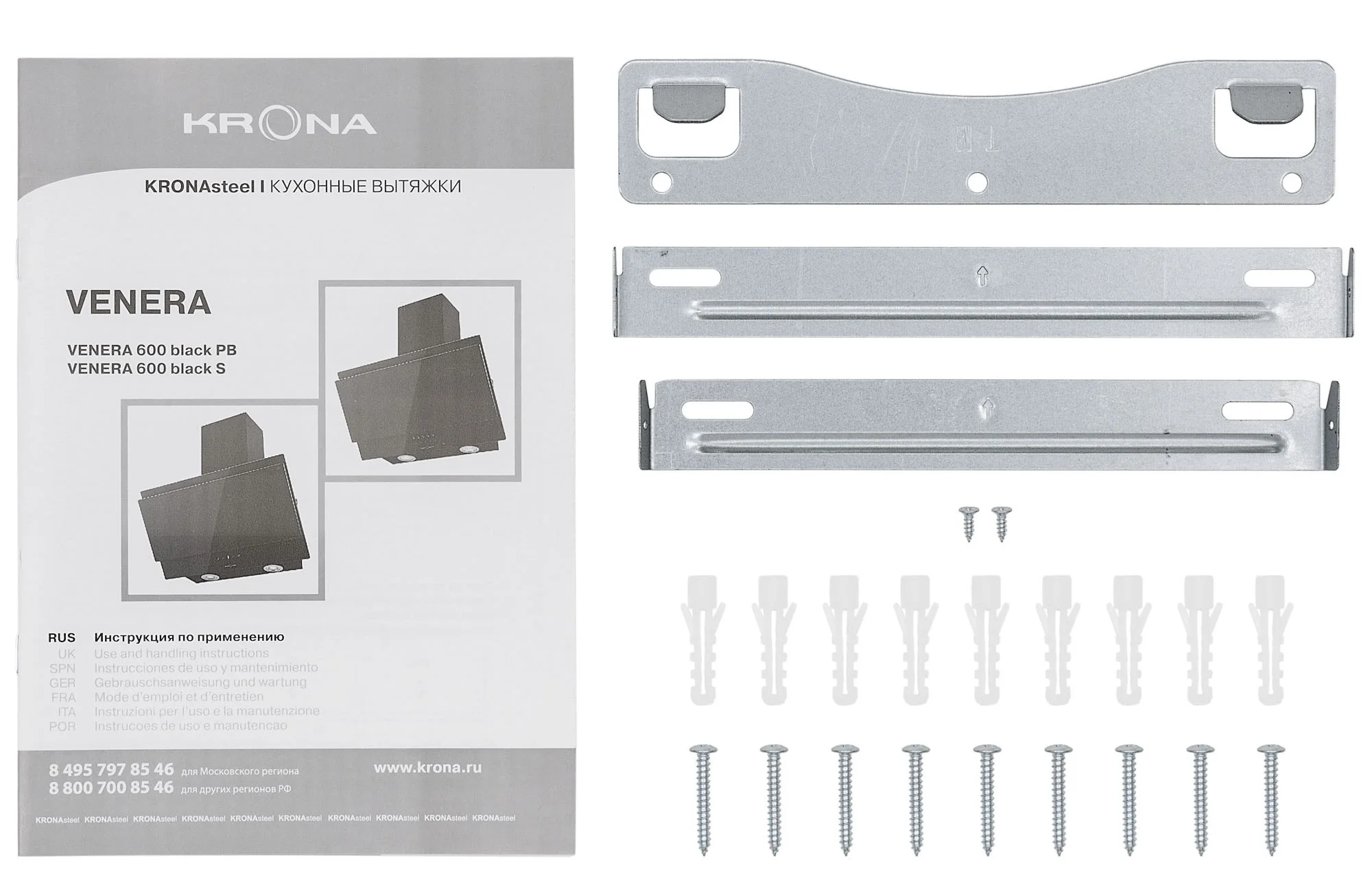 вытяжка наклонная, 60 см, 650 м3/ч, черное стекло