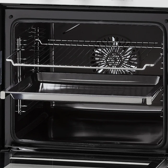 Выдвижные металлические полозья, которые легко выезжают за пределы камеры духовки вместе с противнем, не давая ему упасть.