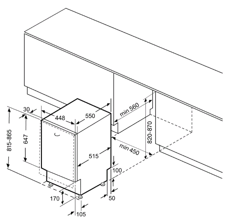 машина посудомоечная встраиваемая, 45 см, 10 комплектов