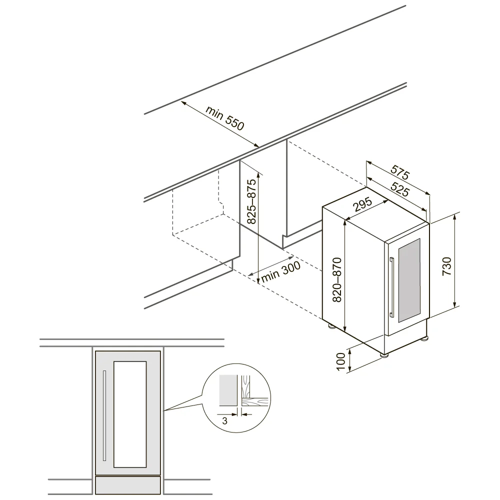 винный шкаф встраиваемый, 54 л, 29,5х57,5х82 см, черный
