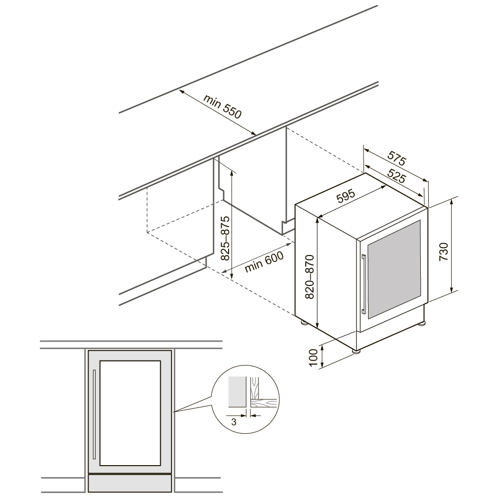 винный шкаф встраиваемый, 132 л, 59,5х57,5х82 см, черный