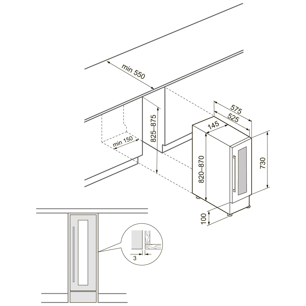 винный шкаф встраиваемый, 22 л, 14,5х57,5х82 см, черный