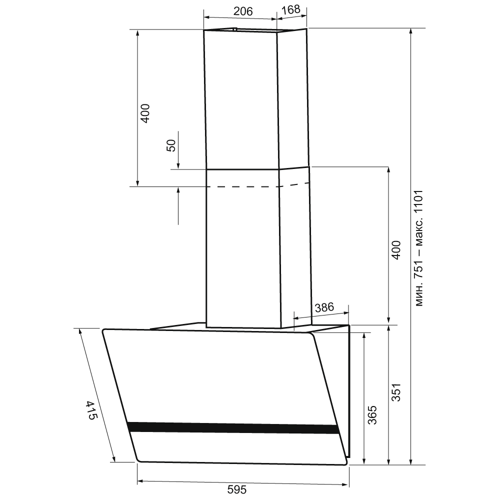 вытяжка наклонная, 60 см, 1100 м3/ч, черный