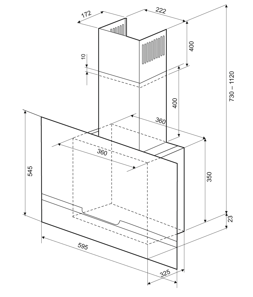 вытяжка наклонная, 60 см, 1000 м3/ч, черное стекло