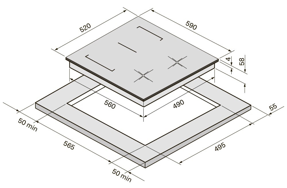 поверхность варочная стеклокерамическая индукционная, 60 см, черный