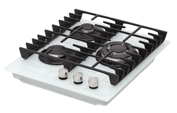поверхность газовая, 45 см, газ на стекле, 3 конфорки, решетки чугунные, белый