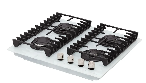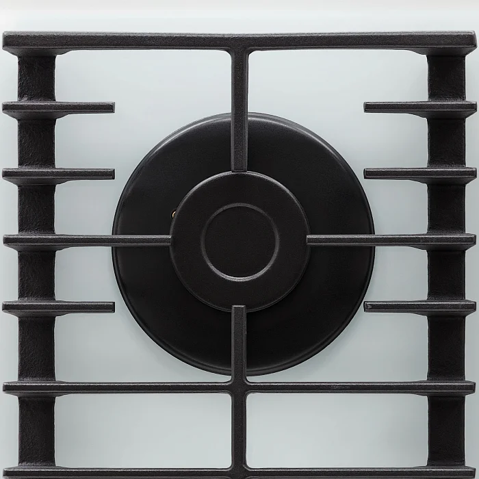 поверхность газовая, 60 см, газ на стекле, 4 конфорки, решетки чугунные, белый