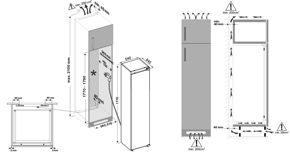 холодильник однокамерный встраиваемый, 300 л, класс энергопотребления А+, капельная система размораживания, 55х54,5х177 см