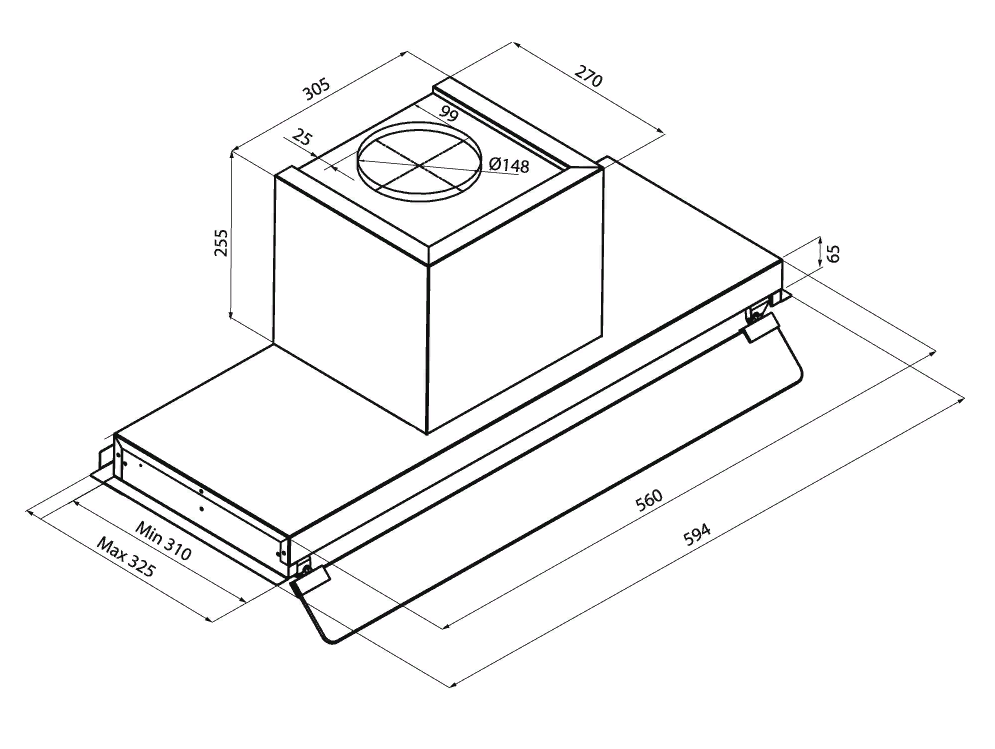 вытяжка встраиваемая в подвесной шкаф, 60 см, 1050 м3/ч, нержавеющая сталь