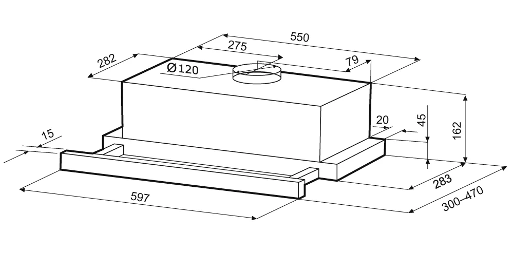вытяжка встраиваемая телескопическая, 60 см, 1000 м3/ч, черный