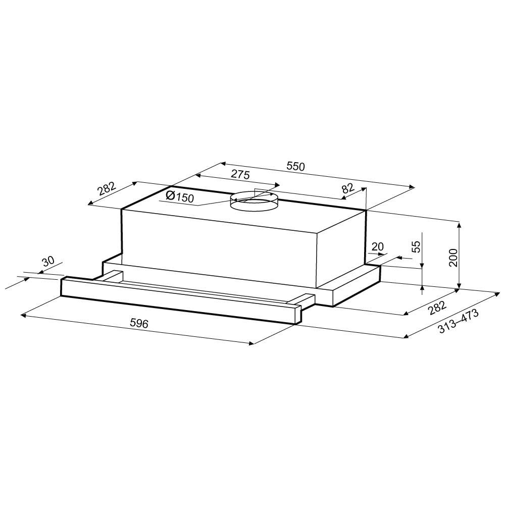 вытяжка встраиваемая телескопическая, 60 см, 950 м3/ч, черный