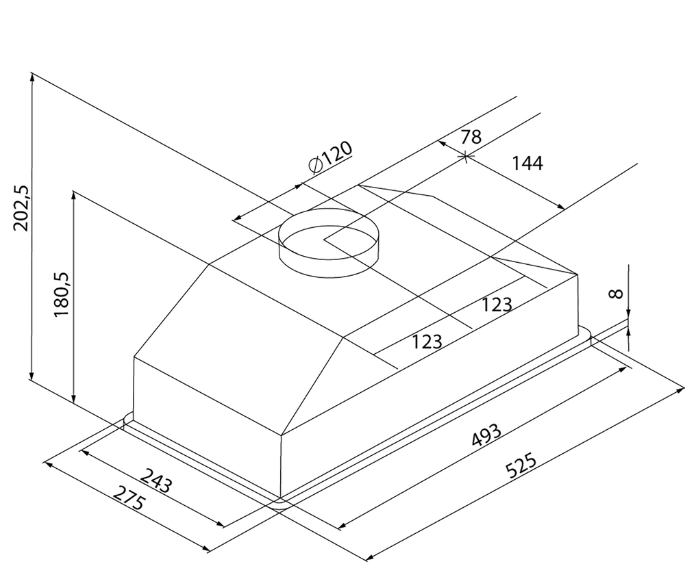вытяжка встраиваемая в подвесной шкаф, 60 см, 640 м3/ч, нержавеющая сталь