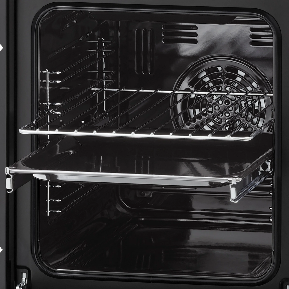 Выдвижные металлические полозья, которые легко выезжают за пределы камеры духовки вместе с противнем, не давая ему упасть.
