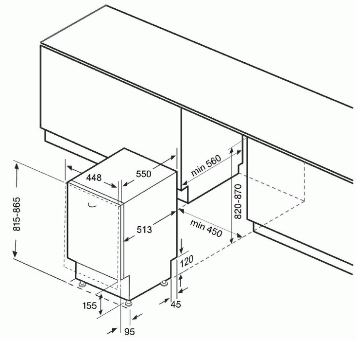 машина посудомоечная встраиваемая, 45 см, 10 комплектов