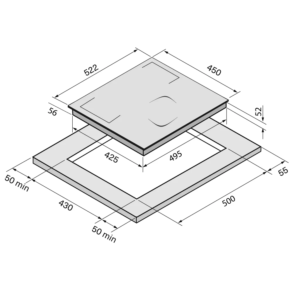 поверхность варочная стеклокерамическая индукционная, 45 см, графит