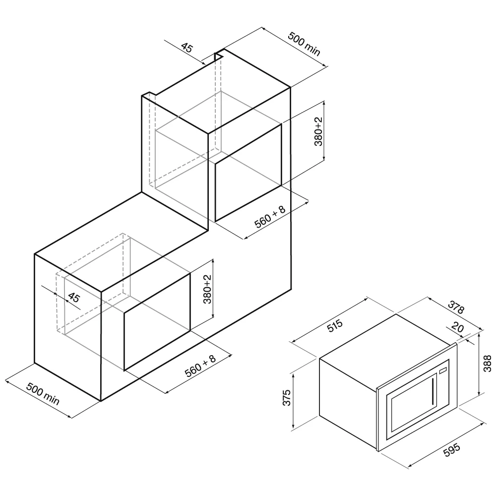 микроволновая печь встраиваемая, 25 л, 59,5х39,9х38,8 см, белое стекло