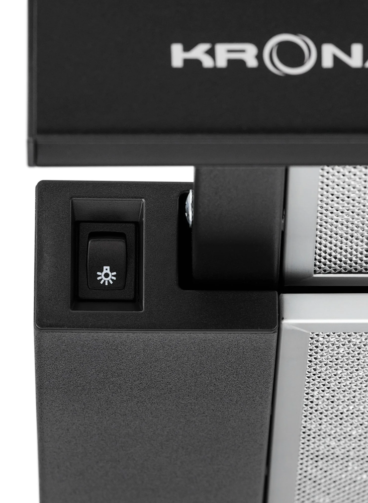 Вытяжка Krona RINA 600 BLACK PB - это пристенная модель, которая обеспечивает высокую производительность в 650 куб.м/час.