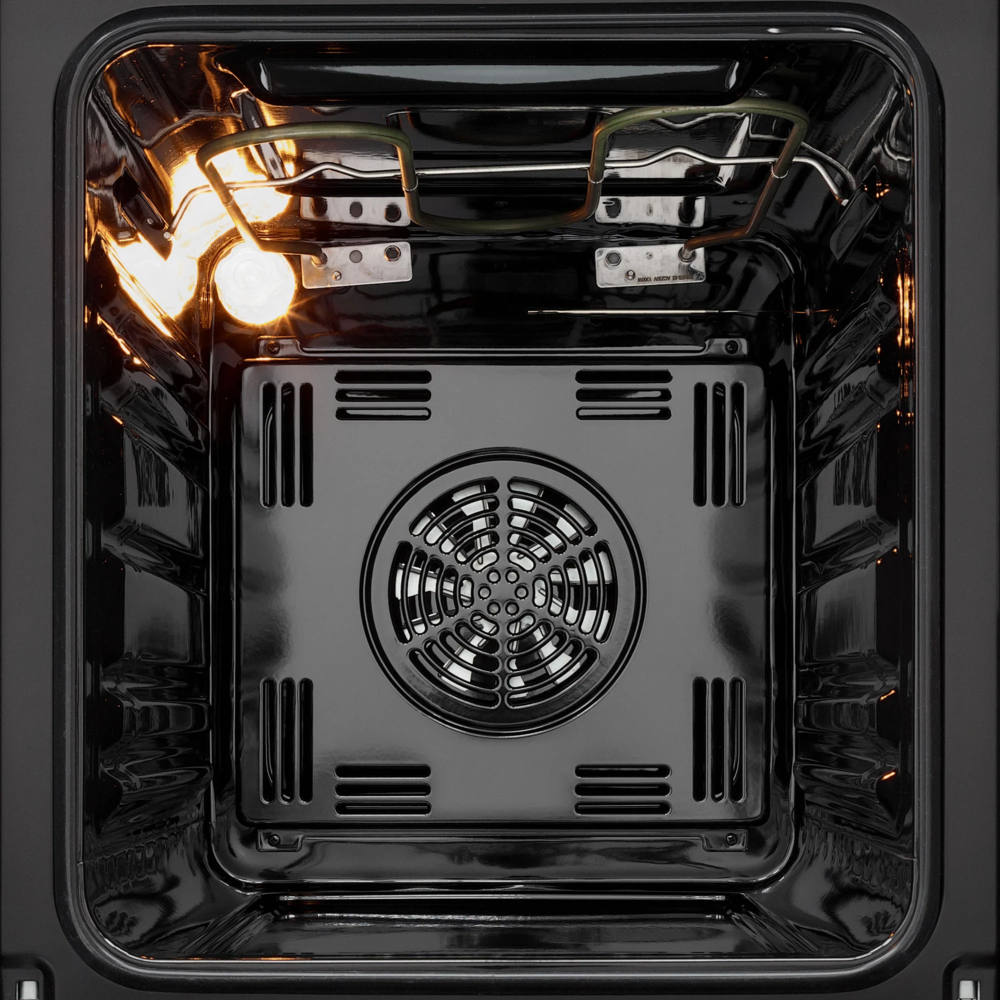 Предполагает наличие встроенного вентилятора, который обеспечивает равномерное запекание благодаря непрерывной циркуляции горячего воздуха.