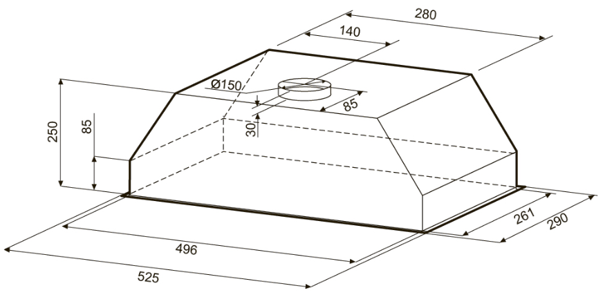 вытяжка встраиваемая в подвесной шкаф, 53 см, 850 м3/ч, белый