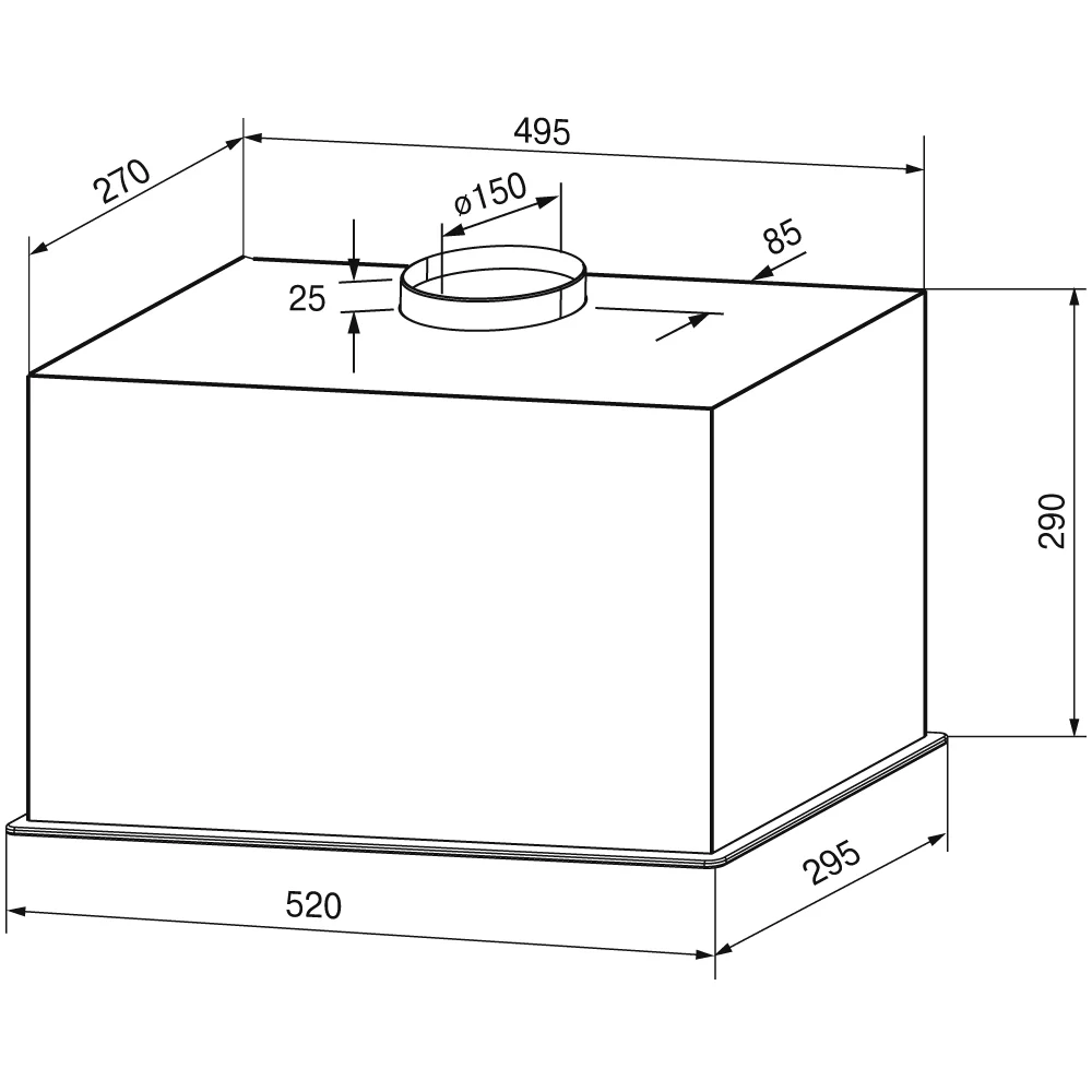 вытяжка встраиваемая в подвесной шкаф, 52 см, 1200 м3/ч, черный