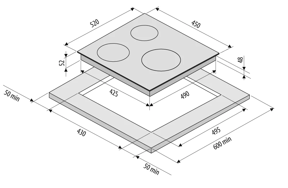 Расположение панели управления варочной поверхностью относительно конфорок. Если панель расположена сбоку, она будет справа.