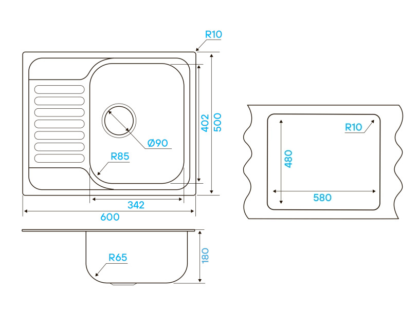 Наличие и расположение крыла кухонной мойки — слева, справа или с обеих сторон. Крыло оборачиваемой мойки можно расположить с любой стороны.
