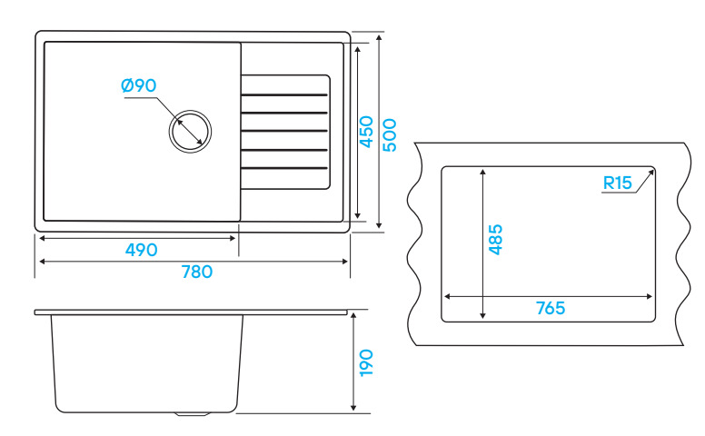 Наличие и расположение крыла кухонной мойки — слева, справа или с обеих сторон. Крыло оборачиваемой мойки можно расположить с любой стороны.