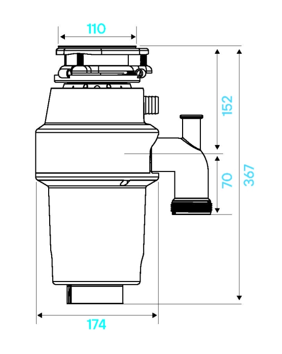 измельчитель пищевых отходов, 370 Вт, 3 800 об/мин