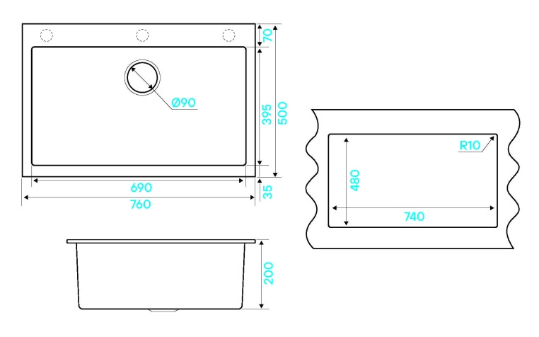 Расстояние от дна до верхней кромки чаши мойки. Оптимальная глубина — 15-18 см. Чем глубже мойка, тем меньше брызг попадет наружу.