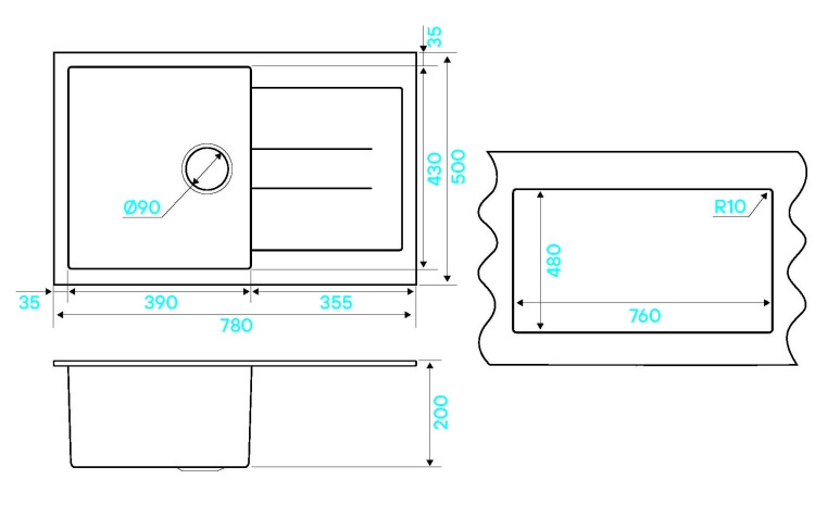 Наличие и расположение крыла кухонной мойки — слева, справа или с обеих сторон. Крыло оборачиваемой мойки можно расположить с любой стороны.