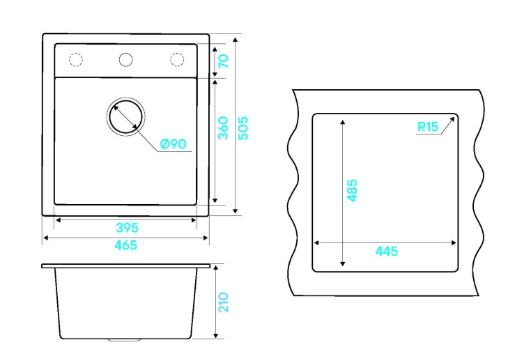 Наличие и расположение крыла кухонной мойки — слева, справа или с обеих сторон. Крыло оборачиваемой мойки можно расположить с любой стороны.