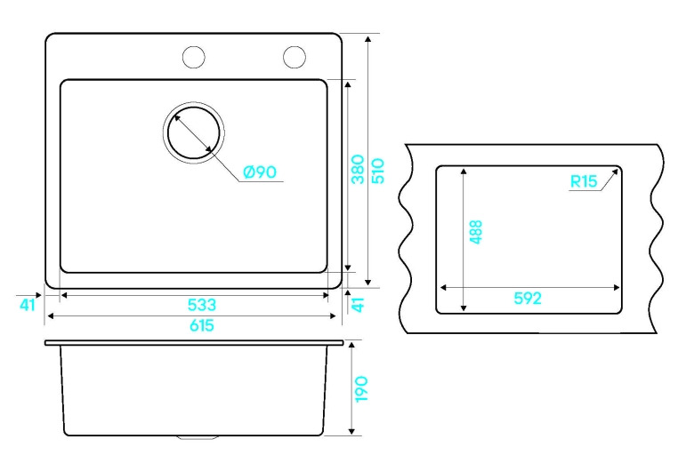 Расстояние от дна до верхней кромки чаши мойки. Оптимальная глубина — 15-18 см. Чем глубже мойка, тем меньше брызг попадет наружу.