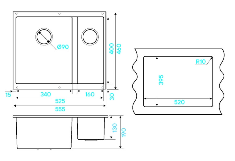 Наличие и расположение крыла кухонной мойки — слева, справа или с обеих сторон. Крыло оборачиваемой мойки можно расположить с любой стороны.