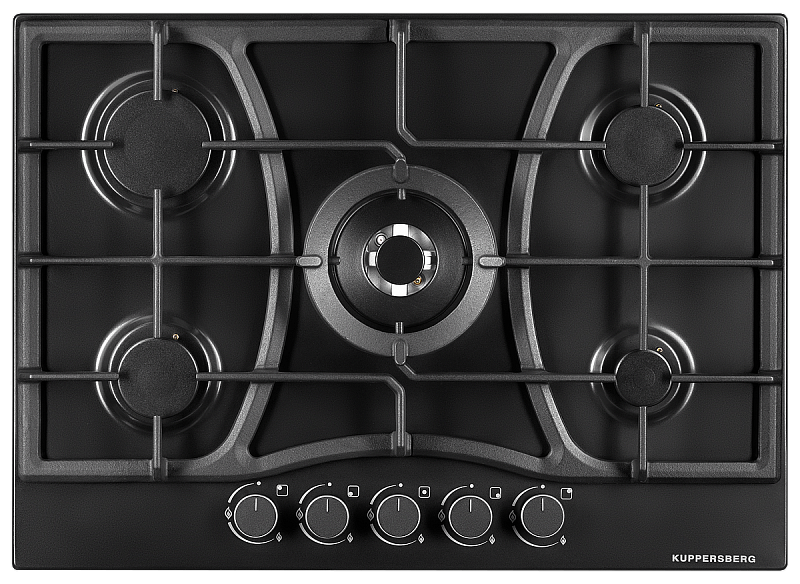 поверхность газовая, 70 см, газ на эмали, 5 конфорок, решетки чугунные, антрацит