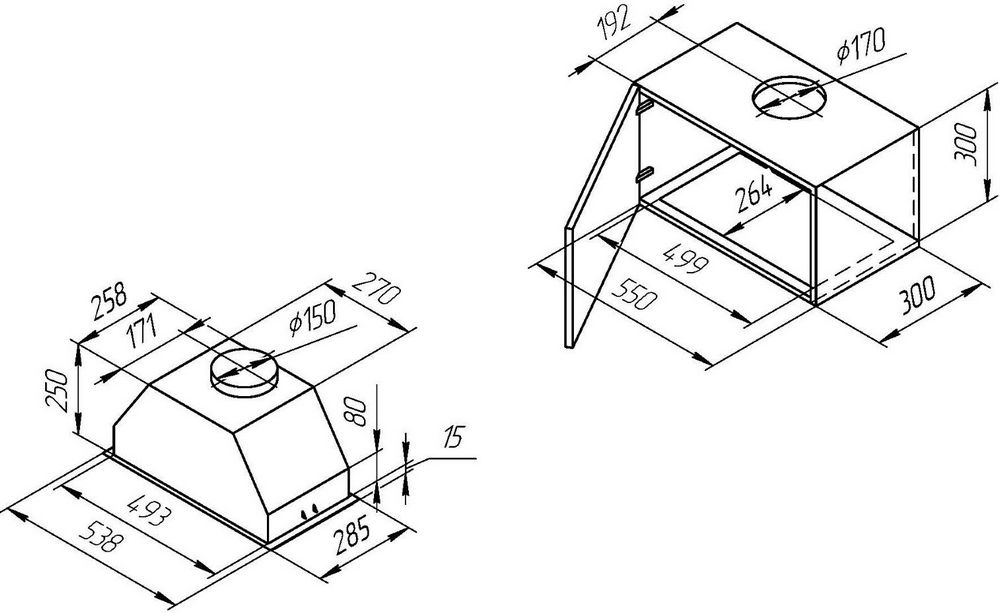 вытяжка встраиваемая в подвесной шкаф, 54 см, 1000 м3/час, нержавеющая сталь
