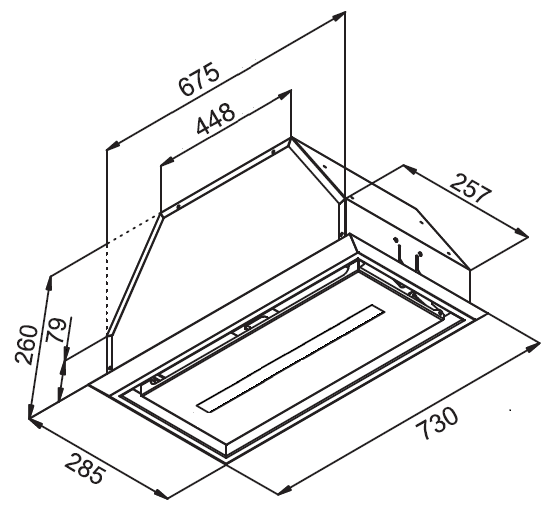 вытяжка встраиваемая в подвесной шкаф, 73 см, 1000 м3/час, черный