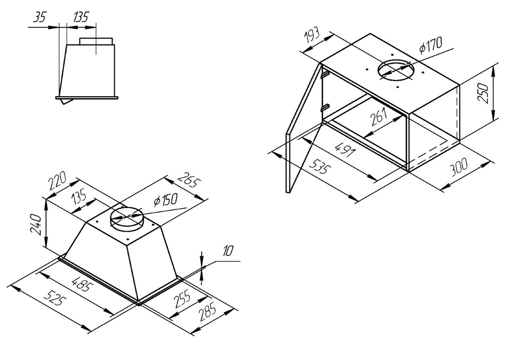 В зависимости от расположения существует несколько типов установки кухонных вытяжек: встраиваемые, стандартные, пристенные, островные и др.