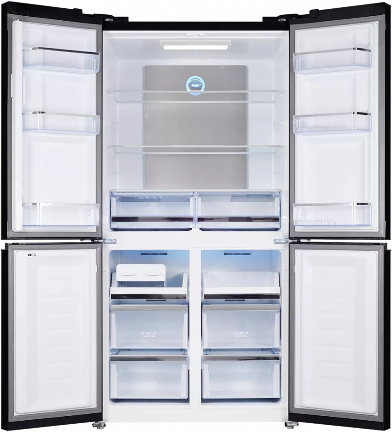 холодильник-морозильник Side-by-Side отдельностоящий, 542 л, класс энергопотребления А++, No Frost, 91,1х70,6х183 см, черный перламутр стекло