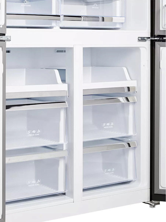 В зоне свежести температура держится на уровне 0°С, так продукты дольше остаются свежими. Подходит для свежего мяса, рыбы, фруктов, овощей.