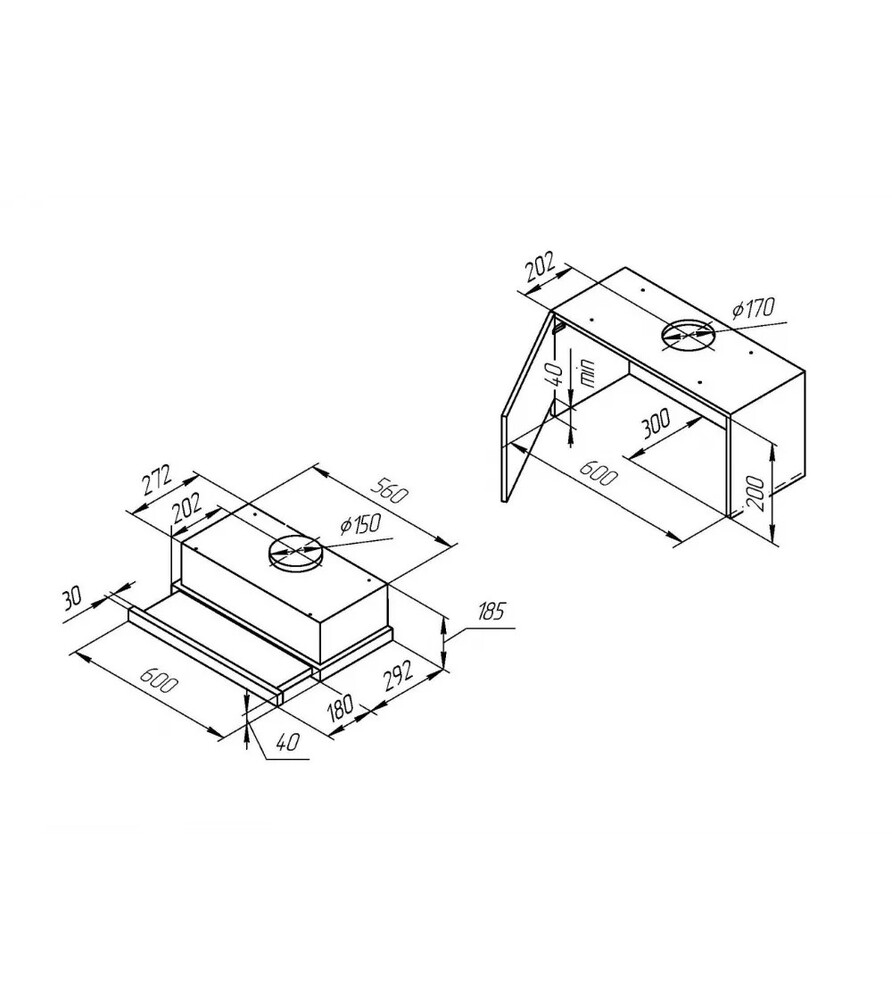 вытяжка встраиваемая телескопическая, 60 см, 550 м3/ч, нержавеющая сталь