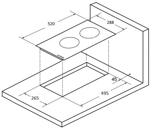 Характер огранки фаски на внешней стороне варочной панели. Металлические рамки предотвращают забивание монтажных швов крошками и пылью.
