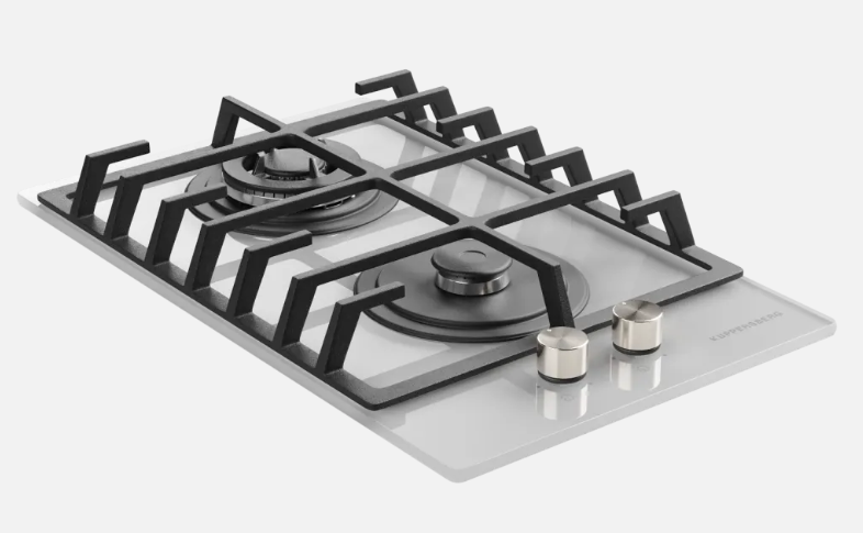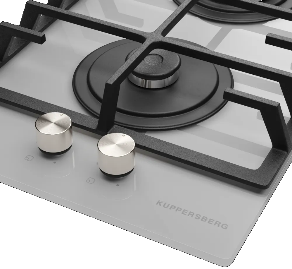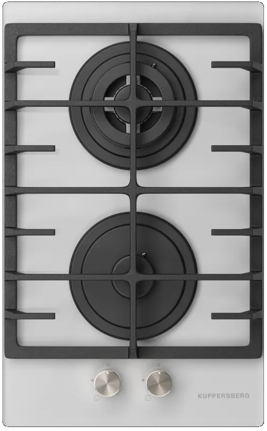 поверхность газовая, 30 см, газ на стекле, 2 конфорки, решетки чугунные, белый