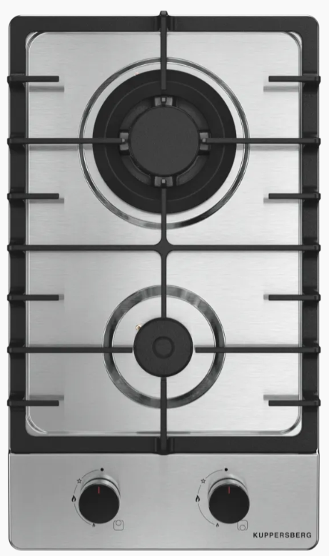 поверхность газовая, 30 см, газ на стекле, 2 конфорки, решетки чугунные, нержавеющая сталь